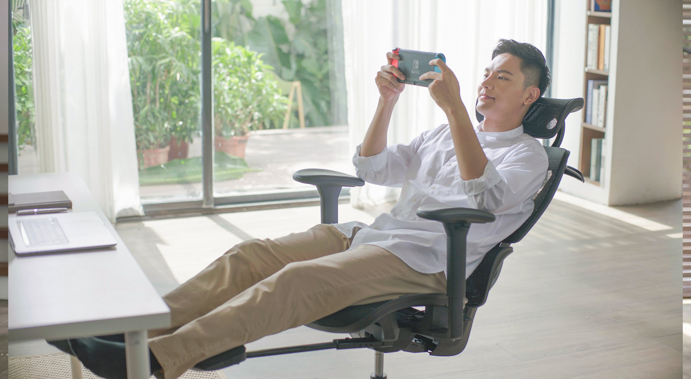 まるで雲に乗ったような極上の座り心地で、集中力が続きやすい環境をサポート。最大127度まで角度を調整でき、リクライニングしてゆったりリラックスできます。