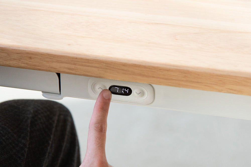 スリムなスチール脚で軽快さを醸し出しながらも、安定性抜群のクワッドモーターを搭載。なめらかで安定した無段階昇降を実現しました。昇降時、わざわざ飲み物の入ったコップを移動させる必要もありません。