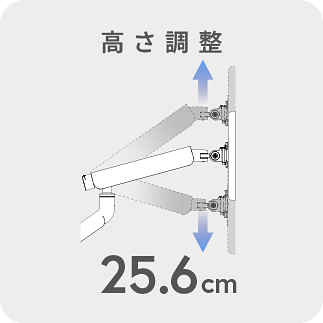 上下左右に頻繁にディスプレイ位置を調整する方にもオススメのメカニカルスプリング式をさらにパワーアップ、ダブルのバネで更に繊細かつ安定した位置調整が可能に。