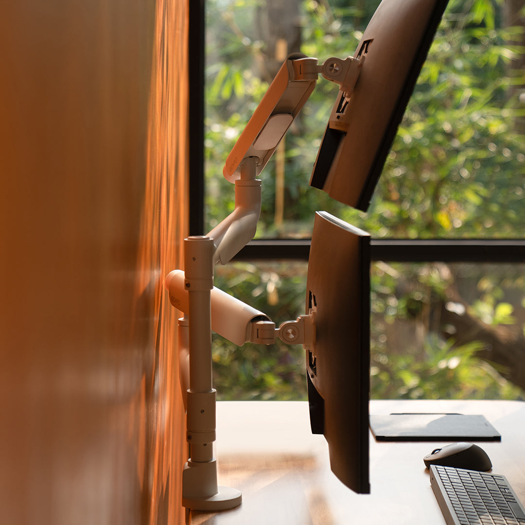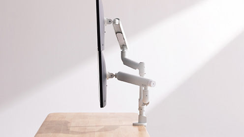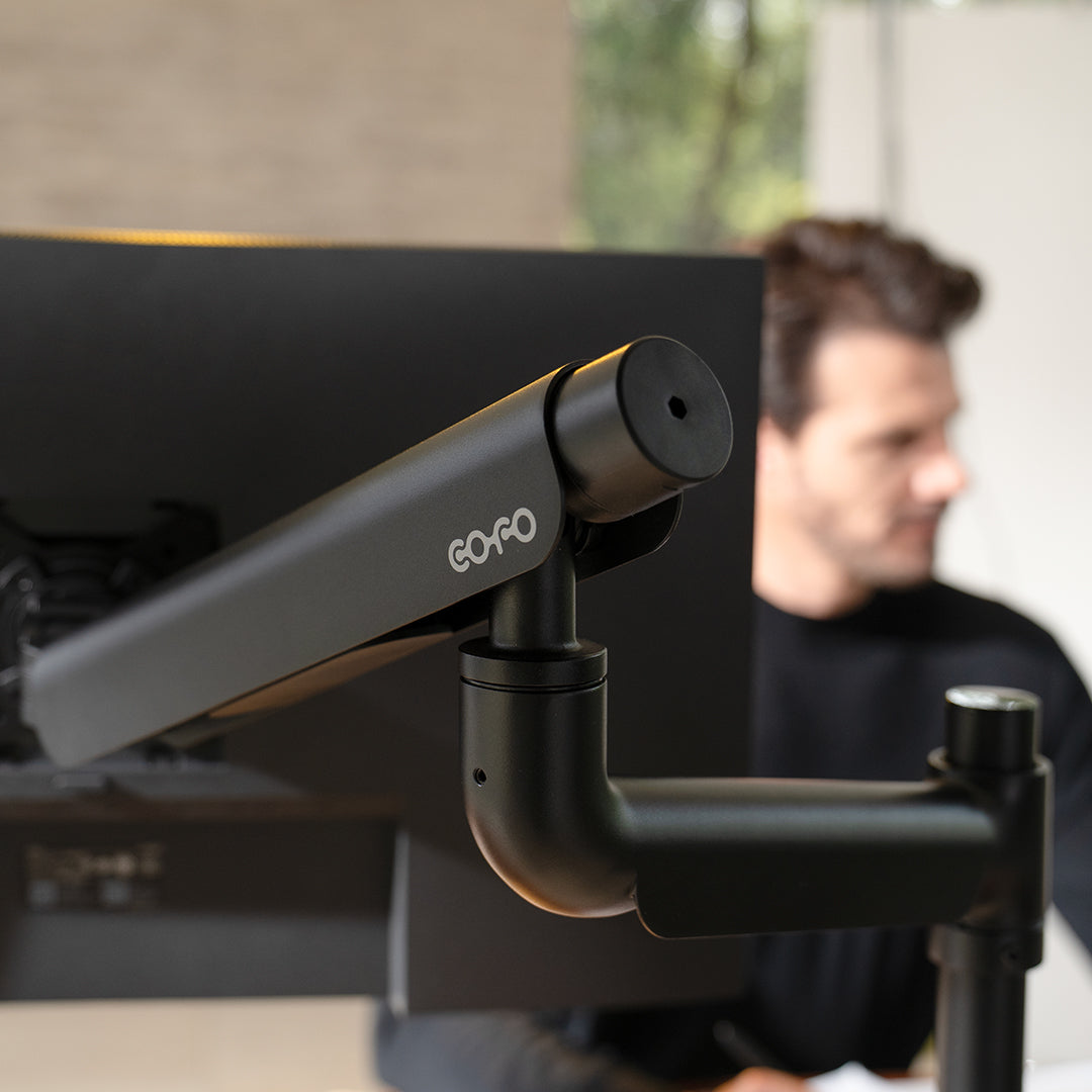長時間デスクワークを行う方には、必須と言っても過言ではないモニター。そんなモニターが指一本で、好きな位置と角度でピタッと止まる。COFOから、理想の操作性を実現するモニターアームを、創りました。